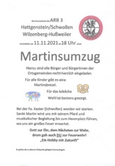Hierzu sind alle Bürger und Bürgerinnen der Ortsgemeinden recht herzlich eingeladen.Für alle Kinder gibt es eine Martinsbrezel.
